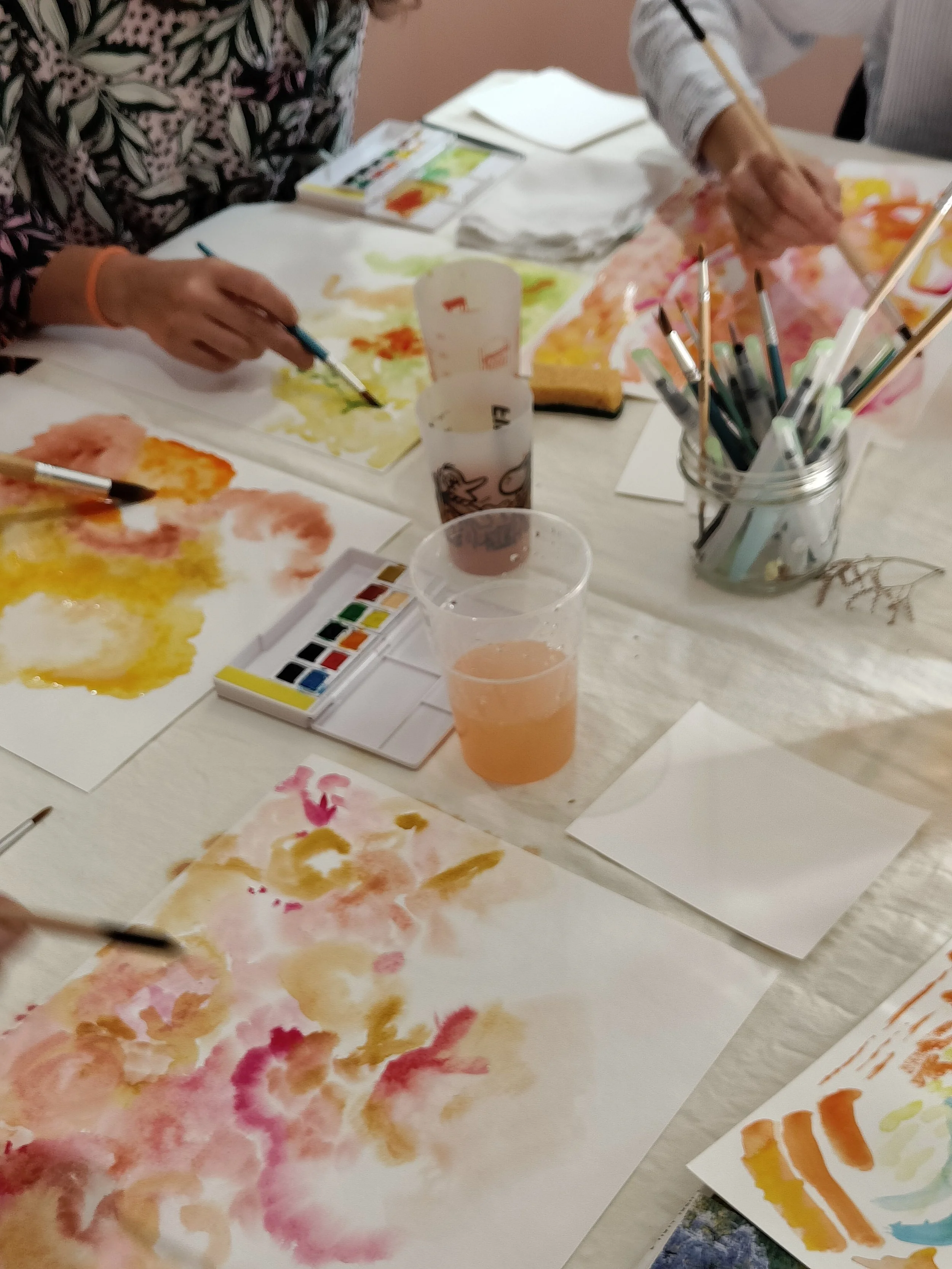 L'atelier se base sur la liberté d'expression par la peinture afin d'entrer dans un paysage imaginaire qui nous est propre.